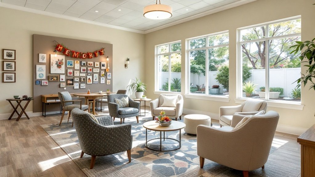 You’ll find emerging residential models diverging from institutional settings toward more intimate care environments, with innovative configurations such as limited-unit group homes distributed throughout metropolitan areas gaining traction. These smaller-scale environments—often accommodating couples facing cognitive challenges—facilitate more individualized attention and reduced stimulation that frequently exacerbates dementia symptoms, while maintaining thorough security protocols to prevent wandering behaviors. The trend toward 10-unit homes dispersed across metro regions provides alternatives to large institutional nursing facilities. Memory care communities offer specialized activities conducted by trained staff who understand the unique needs of individuals with Alzheimer’s or dementia.